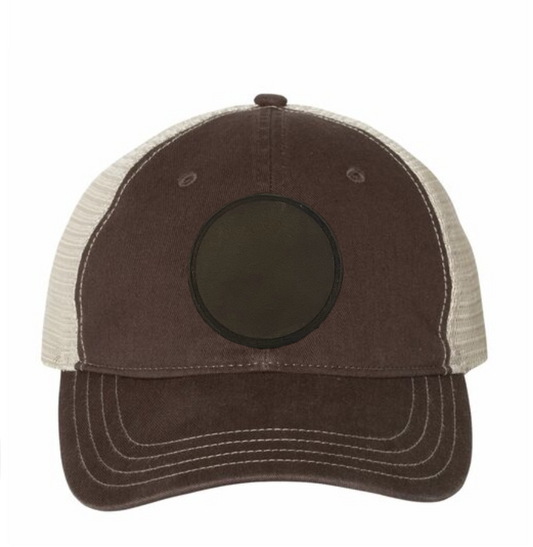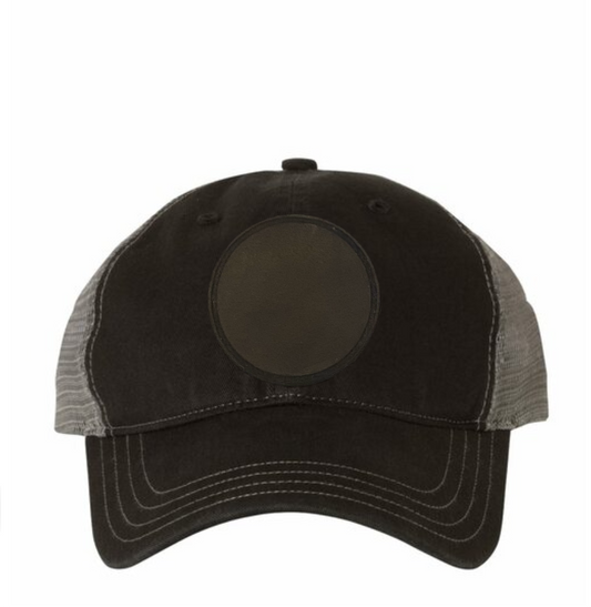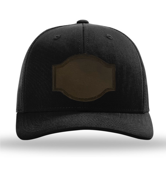 Black/ Black Richardson Leather Patch Trucker Hat