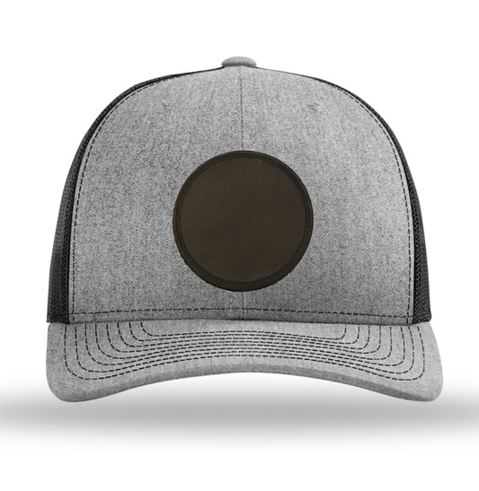 Heather Grey/ Black Richardson Leather Patch Trucker Hat