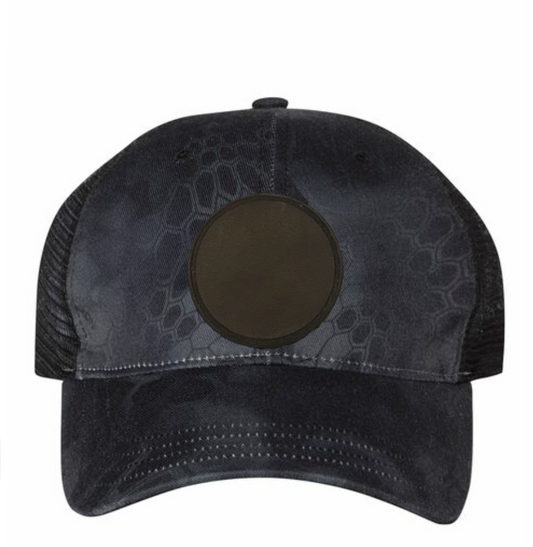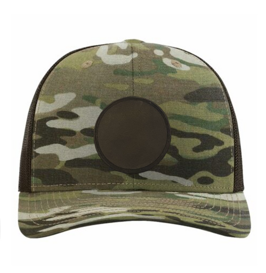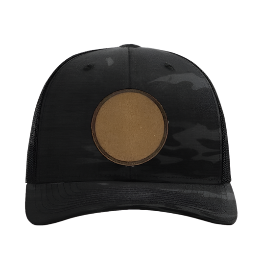 Black Multicam/ Black Richardson Leather Patch Trucker Hat