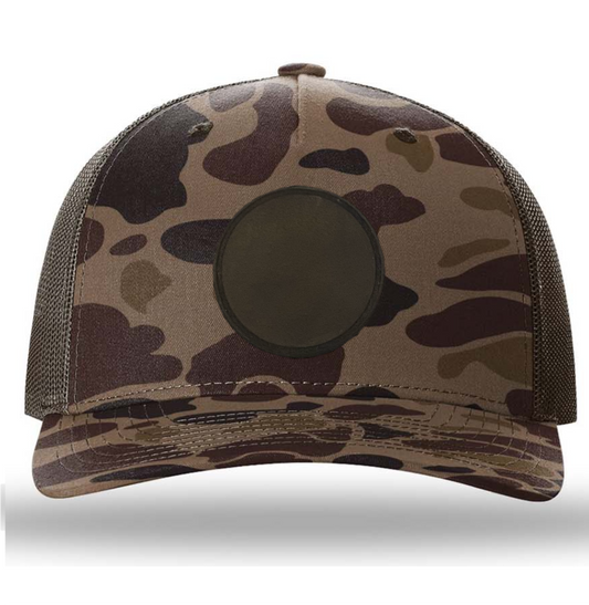 Bark Duck Camo/ Brown Richardson Leather Patch Trucker Hat
