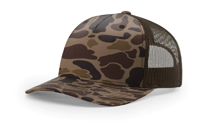 Bark Duck Camo/ Brown Richardson Leather Patch Trucker Hat